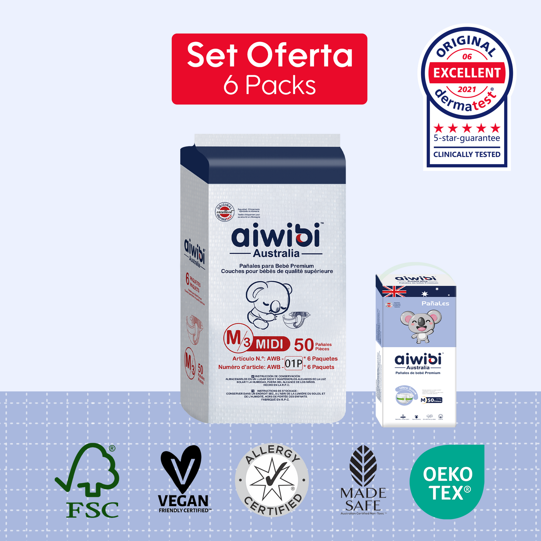 - Los pañales Aiwibi están certificados por el Instituto Dermatológico Alemán Dermatest, lo que garantiza su suavidad con la piel de tu bebé. No añadimos fragancias, extractos, colorantes ni otros productos químicos agresivos, lo que los hace inodoros e hipoalergénicos.