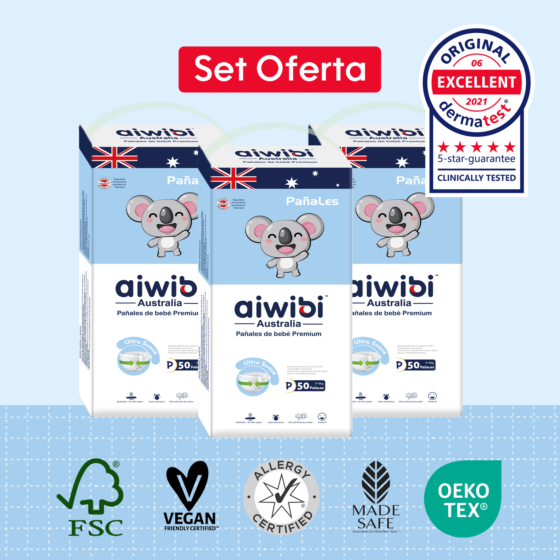Pañales Premium Aiwibi Para Bebé Comfy Soft 3 Paquetes (150un) Talla (P)
