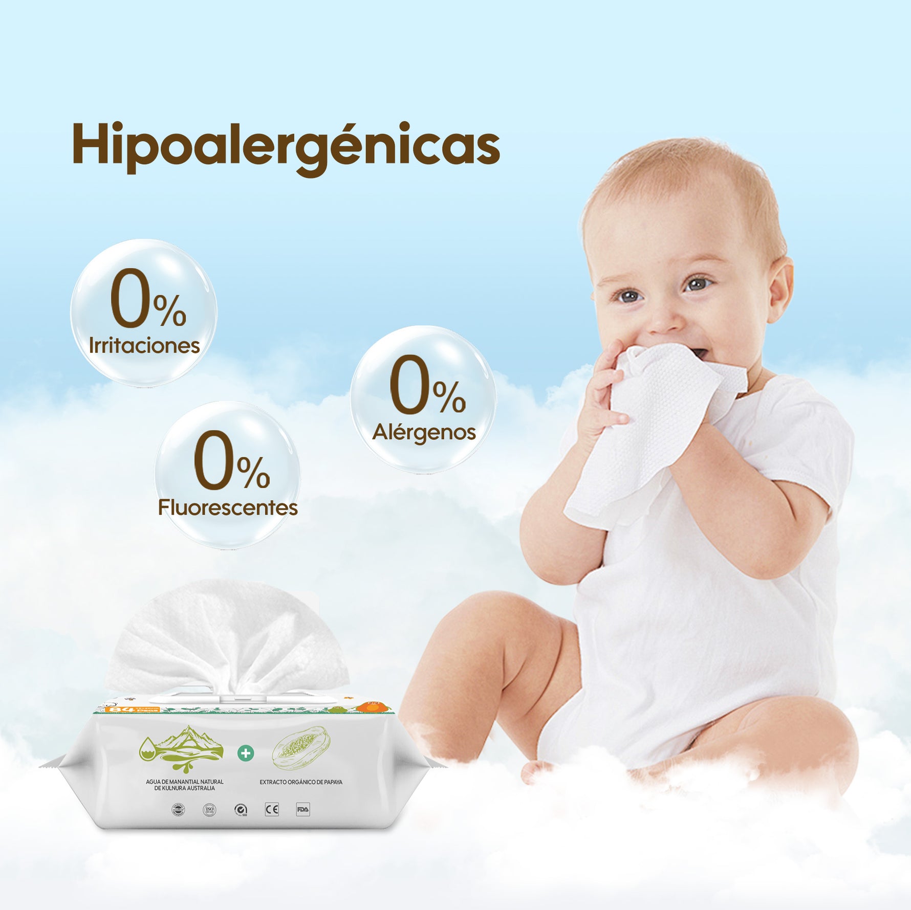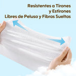 Nuestras toallitas para bebés están elaboradas con fibras biodegradables de primera calidad y están enriquecidas con una fórmula suave, 99% natural, libre de químicos agresivos, fragancias y alcohol.