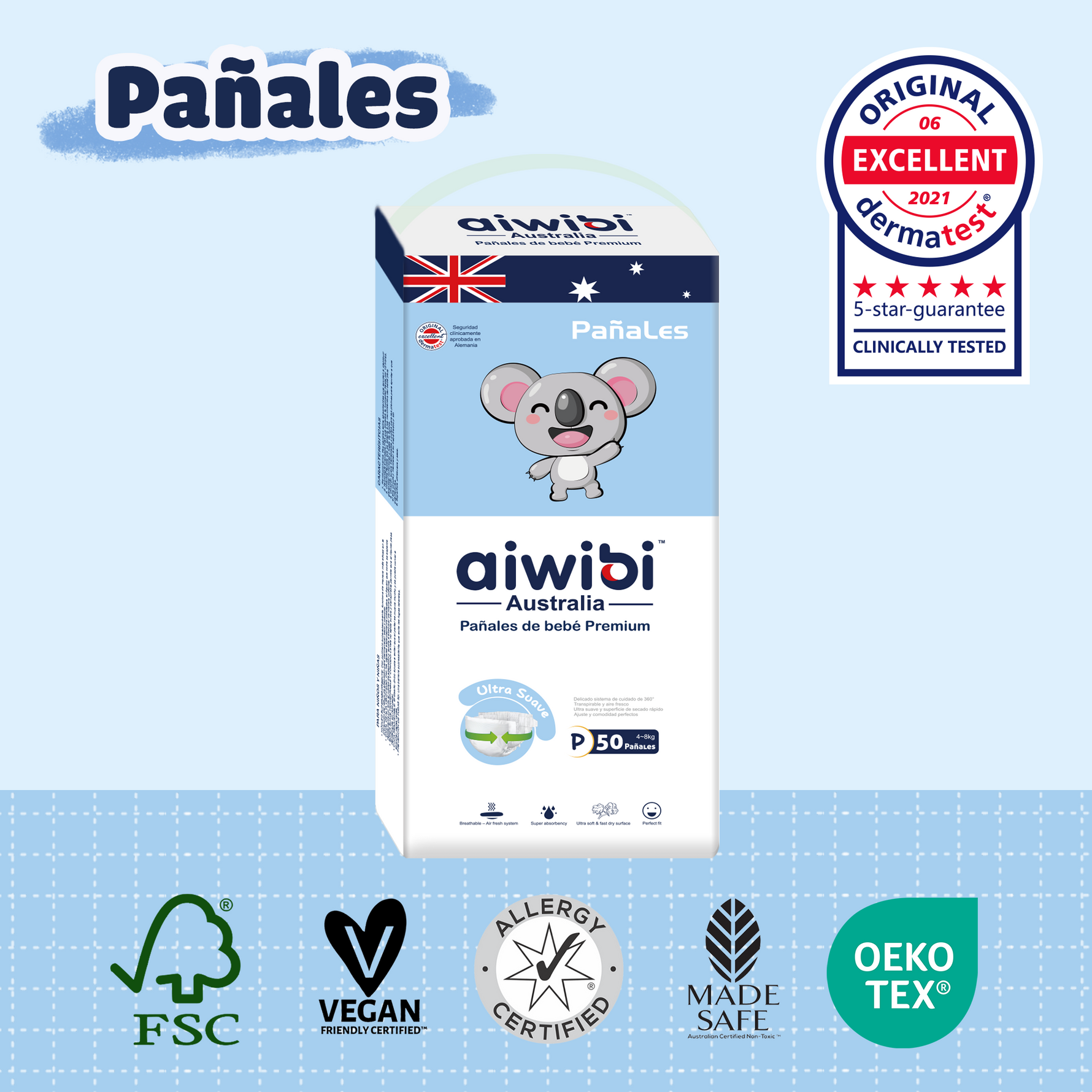 - Los pañales Aiwibi están certificados por el Instituto Dermatológico Alemán Dermatest, lo que garantiza su suavidad con la piel de tu bebé. No añadimos fragancias, extractos, colorantes ni otros productos químicos agresivos, lo que los hace inodoros e hipoalergénicos.